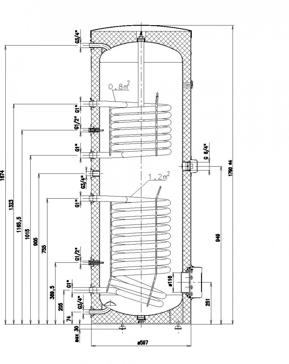 - Alsó hőcserélő felülete: 0,8 m2