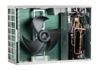 - nagy hatékonyságú, lamellás levegő/hűtőközeg hőcserélő
