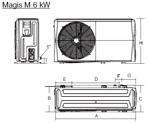 - 6,35kW / 4,95 Névleges fűtési teljesítmény/COP (35/30°C DT és 7°C külső hőm. mellett)