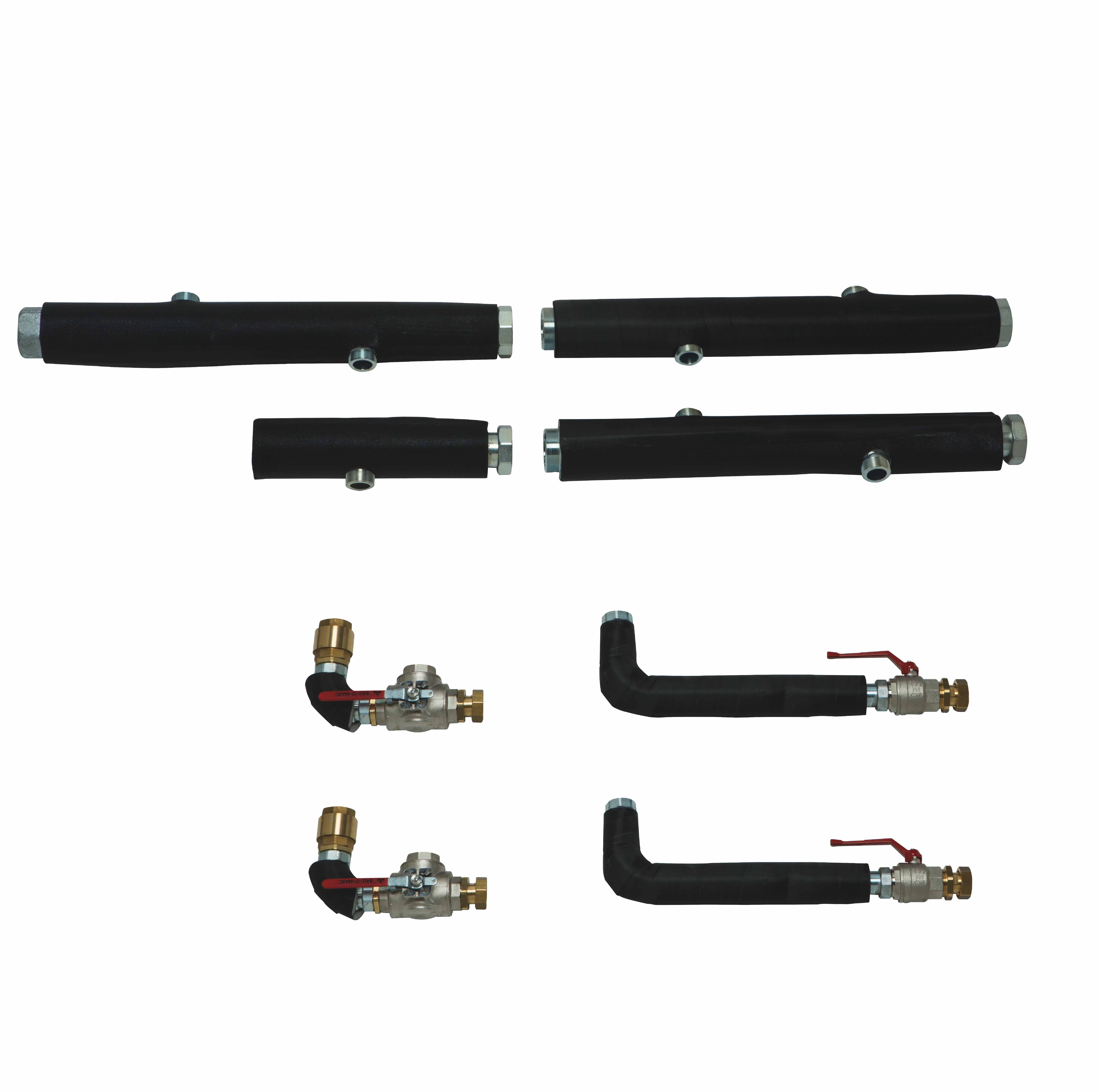 A készlet tartalmazza a készülékekhez szükséges elzáró szelepeket és a visszacsapó szelepeket.