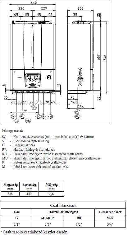 • 748 / 440 / 256 Méret (mag/szél/mély)