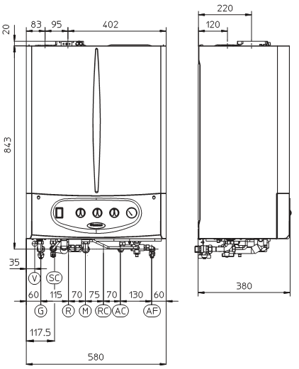 - 843 / 580 / 380 Méret (mag/szél/mély)
