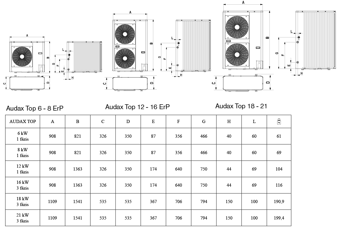 - 7,16 kW Névleges fűtési teljesítmény/COP (35/30°C DT és 7°C külső hőm. mellett)